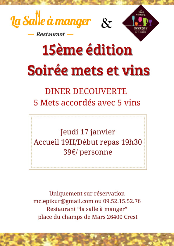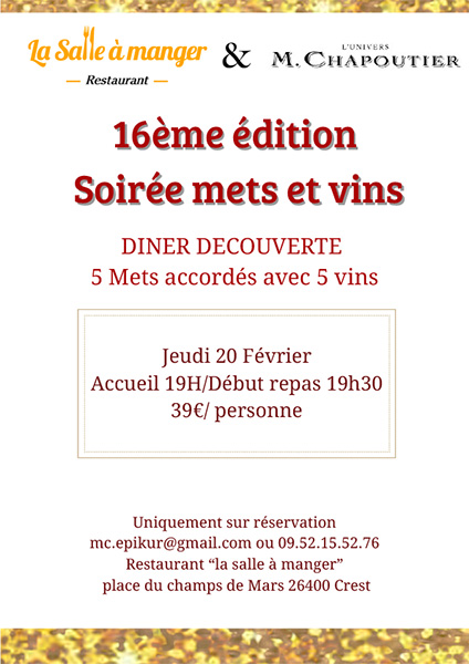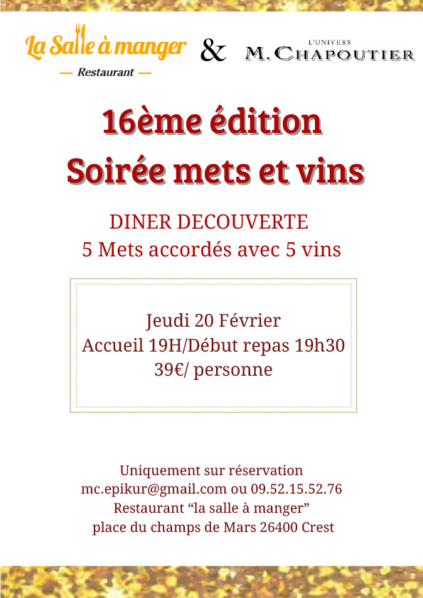 Lors de cette soirée, nous explorons tous ses secrets : entrées, plats, accompagnements. Une expérience gustative unique.